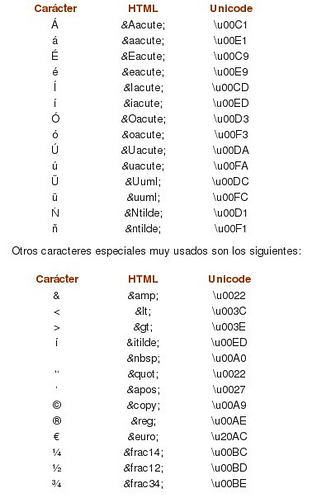 En el caso que queramos escribir, por ejemplo un (<) escribiremos en su lugar (<) para que aparezca tal símbolo en nuestra web.
